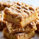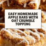 Delicious homemade apple bars featuring a buttery oat crust, tender cinnamon-spiced apple filling, and a crisp crumb topping. These bars are perfect for a cozy dessert or sweet snack, with a delightful balance of sweetness and spice.