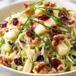 Keywords: apple coleslaw, cranberry salad, fall salad, coleslaw recipe, creamy coleslaw, walnut salad, healthy coleslaw