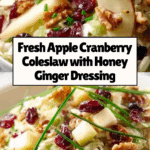 Apple Cranberry Coleslaw is a fresh and vibrant twist on the classic slaw, combining the crunch of coleslaw mix with sweet apples, tart cranberries, and a creamy ginger-spiced dressing. This salad is perfect as a side dish for any meal or a light lunch on its own.