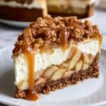 Keywords: Apple Crisp Cheesecake, Fall Dessert, Cream Cheese Dessert, Apple Dessert, Baked Cheesecake, Oat Topping