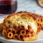 Beefy Cottage Cheese Baked Ziti is a comforting, cheesy pasta dish layered with a rich meat sauce and creamy cottage cheese mixture. This hearty recipe combines tender ziti with a savory beef and pork ragoût, baked to golden perfection. It’s perfect for family dinners or meal prepping.