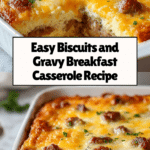 This hearty Biscuits and Gravy Breakfast Casserole brings the classic Southern breakfast into an easy, make-ahead casserole form. Featuring flaky buttermilk biscuits, savory breakfast sausage, creamy homemade sausage gravy, fluffy baked eggs, and optional melted cheddar cheese, this dish is ideal for weekend brunches, holiday mornings, or feeding a crowd with comforting, flavorful goodness all in one pan.