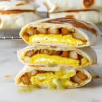 Keywords: Breakfast Crunchwrap, baked eggs, breakfast potatoes, cheddar cheese, breakfast wrap, easy breakfast, make-ahead breakfast