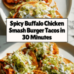 Buffalo Chicken Smash Burger Tacos combine spicy buffalo chicken smash patties with a creamy ranch slaw, all served on soft or crispy tortillas. Perfect for a quick, bold, and satisfying weeknight dinner, these tacos balance juicy, crispy chicken with cooling slaw for a delightful flavor and texture experience.