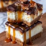 Keywords: Butterfinger cheesecake bars, caramel cheesecake bars, Butterfinger dessert, cheesecake bars recipe, caramel dessert bars, candy bar cheesecake, easy cheesecake bars