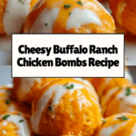 These Cheesy Buffalo Ranch Chicken Bombs are a deliciously spicy and creamy appetizer or snack. Made with shredded chicken, tangy buffalo sauce, smooth cream cheese, sharp cheddar, and zesty ranch dressing all wrapped in flaky crescent roll dough, they bake to golden perfection for a crowd-pleasing, bite-sized treat.