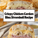 Keywords: Chicken Cordon Bleu Stromboli, stromboli recipe, chicken stromboli, baked stromboli, comfort food, easy dinner recipe, ham and cheese stromboli
