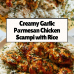 Chicken Scampi with Creamy Garlic Parmesan Rice is a flavorful, comforting one-pan meal that combines tender, seared chicken with a rich and creamy garlic parmesan rice. The dish is infused with garlic, butter, parmesan cheese, and a hint of red pepper flakes and lemon juice, bringing a perfect balance of savory and zesty flavors.