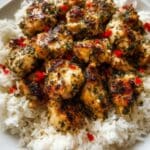 - Assemble and Garnish: Plate the creamy garlic Parmesan rice and top it with the glazed chicken. Drizzle any remaining scampi sauce over the top. Garnish with additional chopped parsley and diced red chili for a pop of color and extra heat.