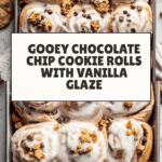Keywords: chocolate chip cookie rolls, cinnamon rolls, chocolate chip cookie dough, homemade rolls, bakery style rolls, vanilla glaze