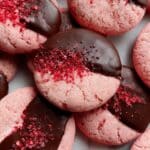 Delight in these Chocolate Covered Strawberry Cookies, blending the classic flavors of sweet strawberries and rich dark chocolate. Soft, buttery cookies infused with strawberry jam and crunchy freeze-dried strawberries are baked to perfection, then drizzled with smooth melted chocolate for a decadent finish. Perfect for berry lovers and chocolate enthusiasts alike!