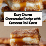 Churro Cheesecake is a delightful fusion dessert combining the flaky, cinnamon-sugar crunch of churros with the creamy richness of cheesecake. Using refrigerated crescent roll dough as a shortcut, this recipe is surprisingly simple and perfect for any occasion.