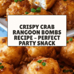 Crab Rangoon Bombs are crispy, golden bites filled with a creamy crab and cream cheese mixture. Perfect as a party appetizer or a tasty snack, these little pouches burst with savory flavor in every crunchy bite.