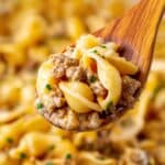 - Combine Pasta and Beef: Stir the cooked pasta back into the skillet, then add the browned beef back into the sauce, mixing everything well.
