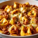 This creamy cheese tortellini with meat sauce is a comforting and satisfying meal that’s perfect for weeknight dinners. Combining rich, savory flavors with tender pasta, it’s a dish the whole family will love.
