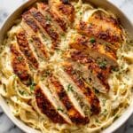- Serve: Plate the pasta coated in the sauce and top it with the sliced chicken strips. Garnish with fresh parsley and lemon wedges for an extra burst of freshness and garnish.