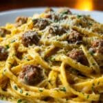 Keywords: Creamy Parmesan Beef Fettuccine, Garlic Butter Sauce Pasta, Ground Beef Pasta Recipe, Italian Comfort Food, Creamy Beef Pasta