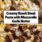 Keywords: steak pasta, creamy ranch pasta, mozzarella pasta, garlic butter pasta, dinner recipe, quick steak dinner