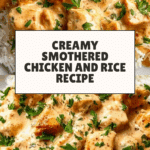 Creamy Smothered Chicken and Rice is a comforting and flavorful one-pan meal perfect for busy weeknights. Tender chicken breasts are seared to golden perfection and simmered in a rich, cheesy sauce served over fluffy rice. This dish is both easy to prepare and incredibly satisfying.