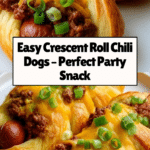 Crescent Roll Chili Dog Delights are an irresistible snack combining the classic flavors of a chili dog wrapped in flaky, golden crescent roll dough. Perfect for a quick meal or party appetizer, each bite offers savory hot dogs topped with chili and melted cheddar cheese, all baked to perfection for a crispy finish.