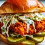 This Crispy Buffalo Chicken Sandwich with Ranch Slaw delivers a perfect balance of spicy, crunchy chicken and cool, creamy slaw. It’s a flavorful twist on a classic favorite that’s sure to satisfy your craving for a hearty, homemade sandwich.