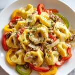 Keywords: Crock Pot cheesesteak, slow cooker tortellini, creamy beef pasta, easy crock pot recipes, cheesesteak tortellini recipe