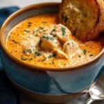 This creamy Chicken Parmesan Soup is a comforting, hearty dish made in a Crock Pot. It combines tender shredded chicken, Italian-seasoned broth, Parmesan cheese, and tortellini, all simmered to perfection with fresh spinach and garnished with basil. Perfect for a cozy meal, it delivers classic Italian flavors in a warm, creamy soup.