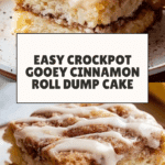 Keywords: crockpot cinnamon roll dump cake, gooey cinnamon roll dessert, slow cooker dessert, easy cinnamon roll cake