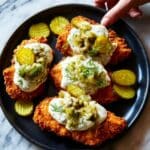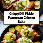 This Dill Pickle Parmesan Chicken recipe features juicy chicken breasts topped with crunchy dill pickles and a golden layer of Parmesan cheese, baked to perfection and served with a tangy lemon-Greek yogurt sauce. It’s a simple yet flavorful dish combining creamy, tangy, and savory elements for a delicious meal.