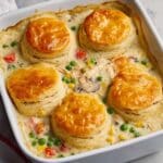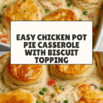 Keywords: chicken pot pie casserole, easy chicken casserole, biscuit topping, comfort food, one-dish meal, homemade chicken pot pie