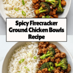 These Firecracker Ground Chicken Bowls feature a spicy, tangy sauce combined with tender ground chicken, sautéed broccoli, and a base of cauliflower rice or steamed rice. This wholesome, flavorful dish is perfect for a quick and satisfying meal with a balance of protein and vegetables.