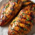 - Prepare the Chicken: Pat the chicken dry thoroughly with paper towels to help achieve a good sear. Season both sides evenly with salt, black pepper, smoked paprika, onion powder, and crushed red pepper flakes if using.