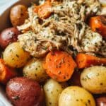 This Garlic Butter Chicken Crockpot recipe is a hearty, comforting meal perfect for busy days. Tender chicken, baby potatoes, and carrots are slow-cooked in a flavorful garlic butter sauce, creating an easy one-pot dinner everyone will love.