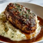 This Garlic Herb Chicken recipe features juicy, pan-seared chicken breasts rubbed with a flavorful mixture of garlic and fresh herbs, served with creamy mashed potatoes and a rich balsamic brown sugar glaze. It’s a comforting and elegant meal perfect for weeknight dinners or special occasions.