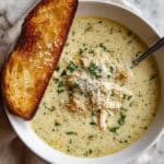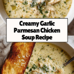Keywords: Garlic Parmesan Chicken Soup, creamy chicken soup, easy chicken soup recipe, comforting soup, stovetop chicken soup, Parmesan chicken soup