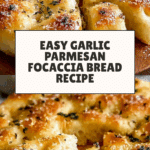 Garlic Parmesan Focaccia Bread is a flavorful Italian classic that combines a soft, airy texture with a crispy golden crust. Infused with garlic, rosemary, and Parmesan, this easy-to-make bread is perfect as a snack, side, or appetizer for any meal.