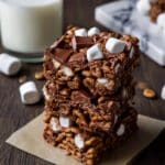 Keywords: Golden Grahams S’mores Bars, s’mores bars, marshmallow bars, chocolate bars, no bake dessert, chewy bars, Golden Grahams recipe
