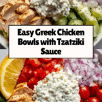 Greek Chicken Bowls are a fresh and flavorful meal perfect for a quick lunch or dinner. Packed with tender marinated chicken, crisp vegetables, and creamy tzatziki, this dish brings a taste of the Mediterranean to your table.