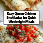 Indulgent Queso Chicken Enchiladas are a creamy, cheesy twist on a classic Mexican favorite, perfect for quick and satisfying weeknight dinners. This recipe features tender shredded chicken mixed with taco seasoning and cheese, rolled in soft tortillas, and smothered in a velvety queso sauce baked to bubbly perfection.