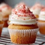 Keywords: strawberry cupcakes, strawberry dessert, buttercream frosting, crunchy topping, bake strawberry cupcakes