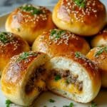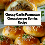 These Irresistibly Cheesy Garlic Parmesan Cheeseburger Bombs combine juicy seasoned beef with melted cheddar cheese, all wrapped in flaky biscuit dough. Perfect as a savory snack or party appetizer, they offer a delightful burst of flavor in every bite.