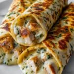 Low Carb Cheesy Garlic Chicken Wraps are a delicious and satisfying meal featuring shredded rotisserie chicken mixed with creamy cheeses, garlic, and herbs, all wrapped in a soft low-carb tortilla and toasted to golden perfection. Perfect for a quick, flavorful, and low-carb lunch or dinner, these wraps combine creamy, cheesy richness with a hint of garlic and fresh parsley, balanced with optional spinach for added nutrition.