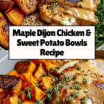 Maple Dijon Chicken & Sweet Potato Bowls offer a comforting and flavorful meal featuring tender marinated chicken breasts, roasted sweet potatoes, and a hearty quinoa or brown rice base, all garnished with fresh herbs. This dish balances sweetness from maple syrup with the tanginess of Dijon mustard, perfect for a nutritious and satisfying bowl that warms your soul.