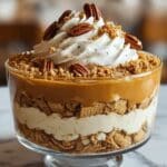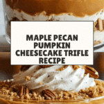 The Maple Pecan & Pumpkin Cheesecake Trifle is a festive layered dessert combining moist pumpkin spice cake, creamy maple pecan cheesecake filling, and fluffy whipped cream. This trifle is crowned with candied pecans and a drizzle of maple syrup, creating a rich and indulgent treat perfect for holiday gatherings, potlucks, or family celebrations. Its blend of autumn flavors and textures makes it a seasonal favorite that’s both visually stunning and delicious.