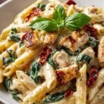 This Tasty Marry Me Chicken Pasta is a creamy, flavorful dish featuring tender bite-sized chicken pieces cooked in a luscious sun-dried tomato and Parmesan cream sauce, served over al dente penne pasta. Garnished with fresh basil, this recipe is perfect for a comforting and impressive meal that’s easy to prepare.
