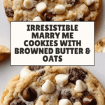 Marry Me Cookies are indulgent, chewy cookies made with browned butter, brown and granulated sugars, oats, and a delightful mix of white and semi-sweet chocolate chips. These cookies offer a perfect balance of nutty, sweet, and slightly spiced flavors with a soft and chewy texture, ideal for cookie lovers looking for a comforting homemade treat.