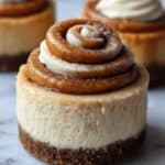 These Mini Cinnamon Roll Cheesecakes combine the creamy richness of classic cheesecake with the warm, spicy flavor of cinnamon rolls in a delightful bite-sized treat. Perfect for breakfast, dessert, or anytime you crave a sweet indulgence, these easy-to-make cheesecakes feature a luscious cream cheese base swirled with a cinnamon and brown sugar mixture and baked to perfection in mini muffin cups.
