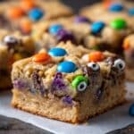 Keywords: Halloween cookies, cookie bars, chocolate chip cookie bars, holiday treats, monster mash dessert