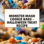 Monster Mash Cookie Bars are a festive Halloween treat featuring a buttery cookie base loaded with chocolate chips, colorful Halloween M&Ms, and candy eyeballs for a spooky twist. These bars are chewy, sweet, and perfect for parties or a fun seasonal dessert.