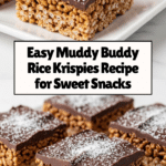 A delightful twist on classic Rice Krispies treats, Muddy Buddy Rice Krispies combines crispy cereal with a luscious blend of chocolate, peanut butter, and butter, coated generously with powdered sugar for a sweet, crunchy snack perfect for any occasion.